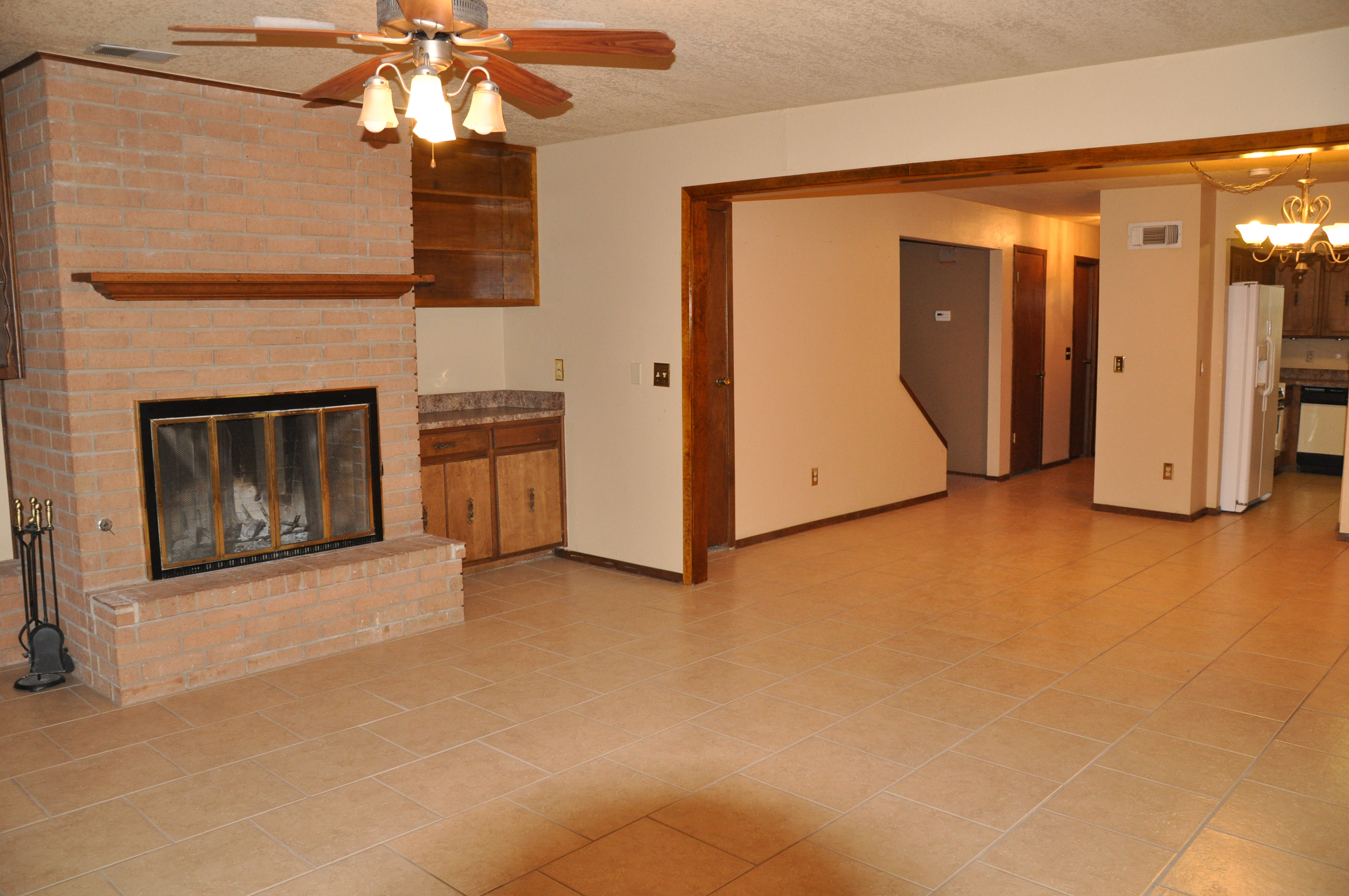fireplace and nice patio area.