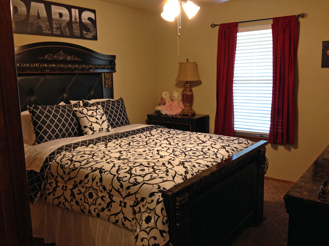 bedroom, cozy fireplace and a great